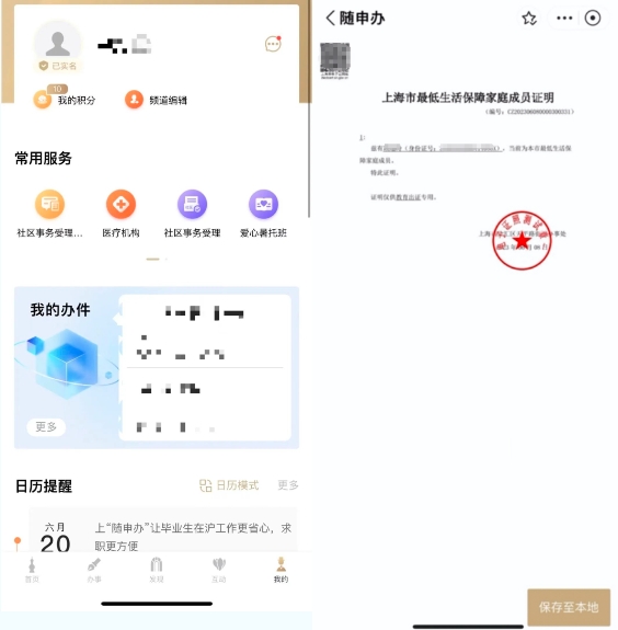 目前上海市最低生活保障家庭成员证明、支出型贫困家庭成员证明、定期定量生活补助对象证明、低收入困难家庭成员证明、特困人员证明等5项民政社会救助项目证明,已全部实现电子证照制发和数据共享,一键“亮证”,轻松办理相关事项!