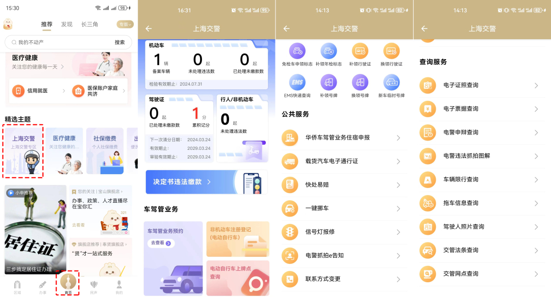“随申办市民云”APP的“上海交警”专区涵盖了市民关注度较高的交通违法视频举报、一键挪车、车驾管业务预约、非机动车注册登记、免检车申领标志、换领行驶证、快处易赔等高频车主热门业务。