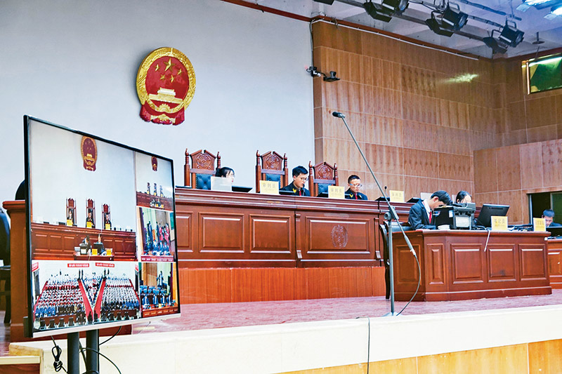 智慧法院建设有力推动了技术运用与司法审判深度融合,为群众诉讼和法官办案提供了智能化、一体化、协同化服务。图为2019年11月,广州互联网法院开展涉网金融借款纠纷在线示范庭审,来自全国各地的2500多名类案当事人旁听了该案的调解过程。 新华社发 毛一竹/摄