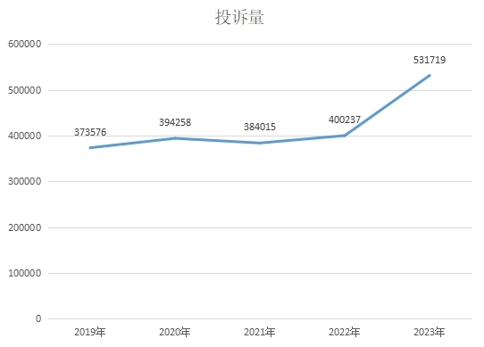 2023年,广东全省各级消委会共接待消费者来访和咨询约19.23万人次,处理消费者投诉531719件,同比增长32.85%,为消费者挽回经济损失约3.98亿元,同比增长49.42%。因经营者有欺诈行为得到加倍赔偿投诉432件,加倍赔偿金额约48.96万元。全省消委会收到锦旗和表扬信125面/封。从总体情况看,2023年消费投诉呈现以下特点: