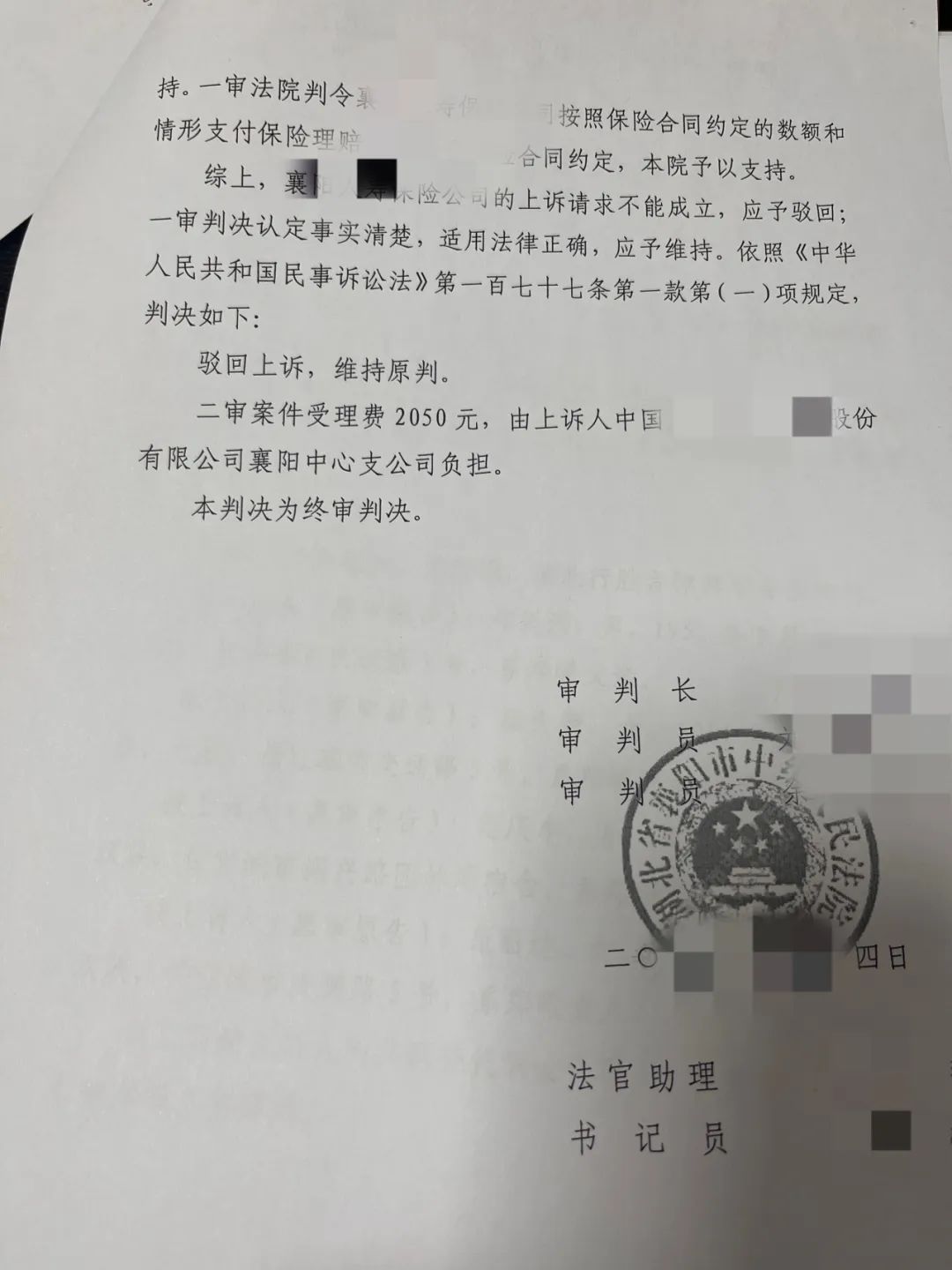 判决后,保险公司不服,提起上诉,二审维持原判。