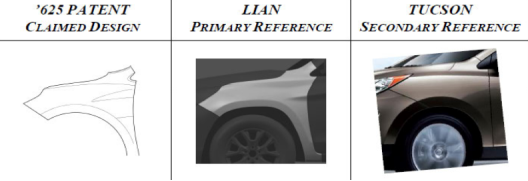 作为对GM的回应,LKQ向美国专利审查与上诉委员会(PTAB)对涉案专利提出了无效请求。无效的理由包括:涉案专利相对于美国外观设计专利 D773,340(Lian)缺乏新颖性,相对于Lian是显而易见的,并且相对于Lian和公开了2010 年款现代途胜(TUCSON)汽车的宣传手册的结合是显而易见的。