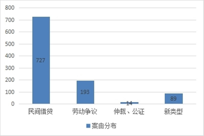 第五,从案由分布看,民间借贷、劳动争议仍是虚假诉讼的高发领域。同时,随着社会经济发展,虚假诉讼开始向金融借款、股权转让、破产债权确认等新领域延伸,涉虚假劳动仲裁、虚假公证债权文书案件也有所显现。