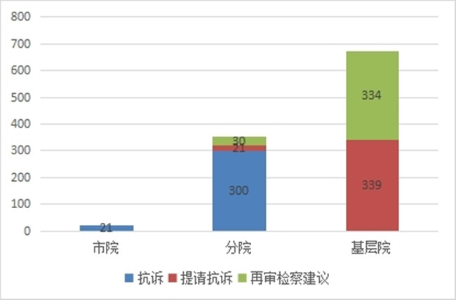 第三,从监督层级看,基层检察院办理监督案件最多,提出监督意见占全市结案数的59.6%,民事虚假诉讼案件在基层法院更易发多发。