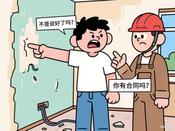 张某找熟人装修,对方拍胸脯保证说:“放心,工钱4万元,3个月搞定!”结果工期一拖再拖,还偷工减料。张某要维权,对方却耍赖:“谁跟你约定了?有合同吗?”