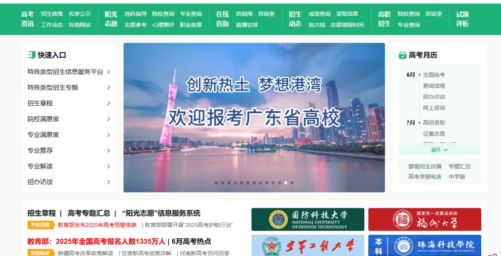 2025广东高考志愿填报分两个时段进行,第一时段:6月28日9:00—6月29日16:00;第二时段:6月29日19:00—7月4日16:00。志愿填报入口详见下文。