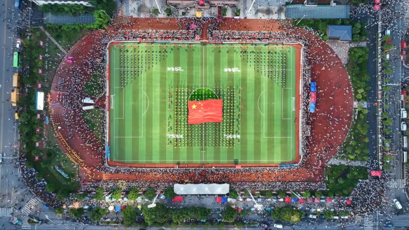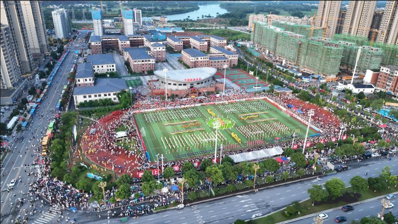开幕式上,1500名群众组成的《红土地上的村超》方阵率先亮相,弋阳西李村太平桥灯板凳龙、舞龙表演、足球少年方阵及龟峰方阵陆续登场,集中展示了江西上饶特色民俗文化和物产资源,其间,方志敏中学300名学生诵读《可爱的中国》,国家级非遗弋阳腔艺术保护中心献上《好一曲高腔》……各类节目亮点纷呈,现场气氛热烈。