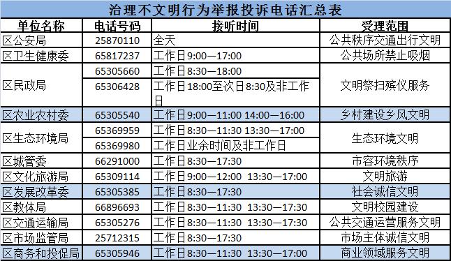 新区不文明行为举报电话