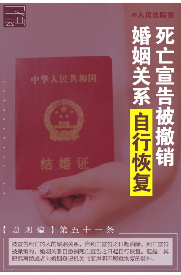 原标题:《每日一“典”:死亡宣告被撤销,婚姻关系自行恢复》