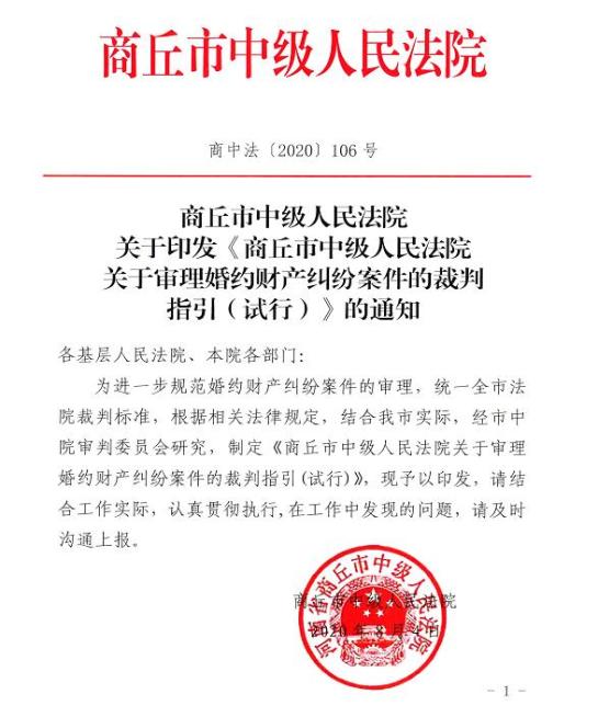 近日,为引导群众树立正确的婚姻家庭观念,切实发挥司法审判对治理高价彩礼问题的价值引领作用,进一步规范婚约财产纠纷案件的审理,商丘中院结合审判实际,制定出台了《商丘市中级人民法院关于审理婚约财产纠纷案件的裁判指引(试行)》(下称《指引》),对审判实践中的重点、热点问题作出回应,为两级法院审理此类案件提供参考依据。