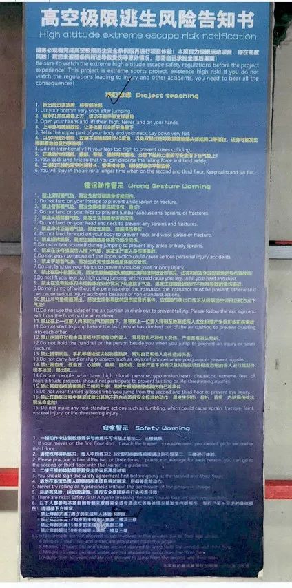 法院认为,蹦床馆内各项目的活动方式、注意事项和风险等级有所相同,对此,场馆应予以充分、有效提示。高空极限逃生项目禁止7周岁以下未成年人体验,但相关要求仅张贴在该项目跳台区的墙上,且分布于众多条款中。小帅父母自进场直至事发,无任何有效渠道可以获知,从而影响其对活动项目的选择,甚至引发误判。