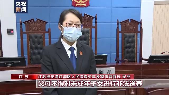 江苏省淮安市清江浦区人民法院少年及家事庭庭长 吴然:经过我们审理查明,他们并没有到民政部门进行合法的收养登记。根据《中华人民共和国未成年人保护法》相关规定,父母不得对未成年子女进行非法送养,所以我们对两原告发出了首份家庭教育指导令。我们联合妇联部门,聘请专业的家庭教育指导师,对其二人进行了家庭教育指导,希望他们能在这次事件中吸取教训,也知晓法律的规定,在今后的过程中能够依法履行对未成年子女的监护职责。