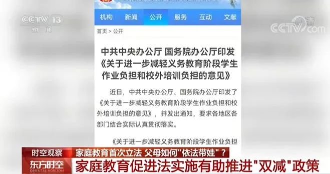2021年7月,中办、国办印发《关于进一步减轻义务教育阶段学生作业负担和校外培训负担的意见》,在“双减”背景下出台的《家庭教育促进法》自然肩负起落实“双减”的重任。