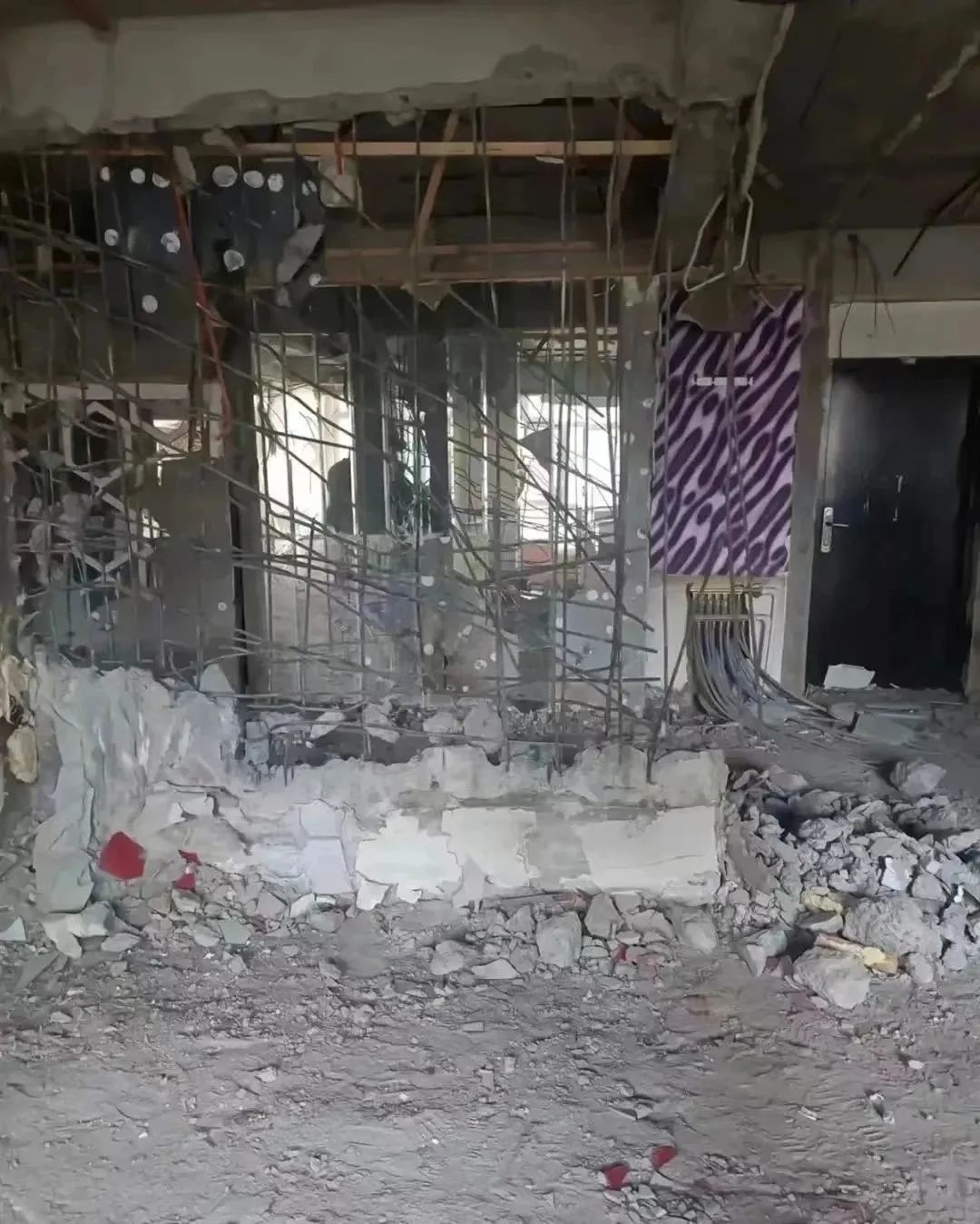 △正在装修的室内多面墙体被拆除,其中一面墙体钢筋缠绕