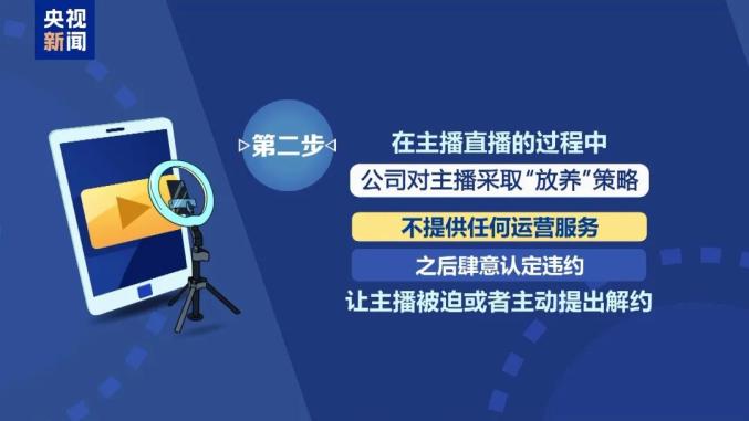 骗局的第二步是在主播直播的过程中,公司对主播采取“放养”策略,不提供任何运营服务,之后肆意认定违约,让主播被迫或者主动提出解约。