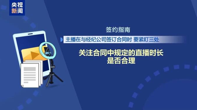 主播在与经纪公司签订合同时,要紧盯三处。首先,要关注合同中规定的直播时长是否合理。