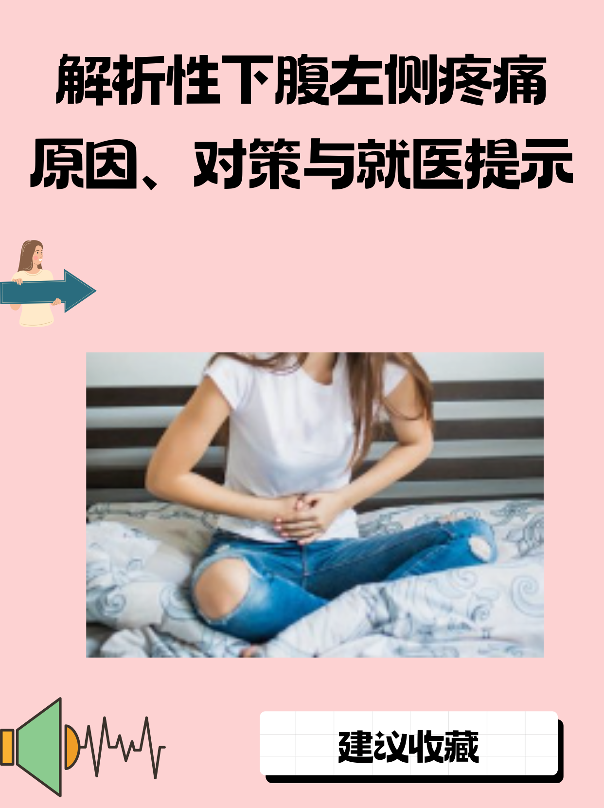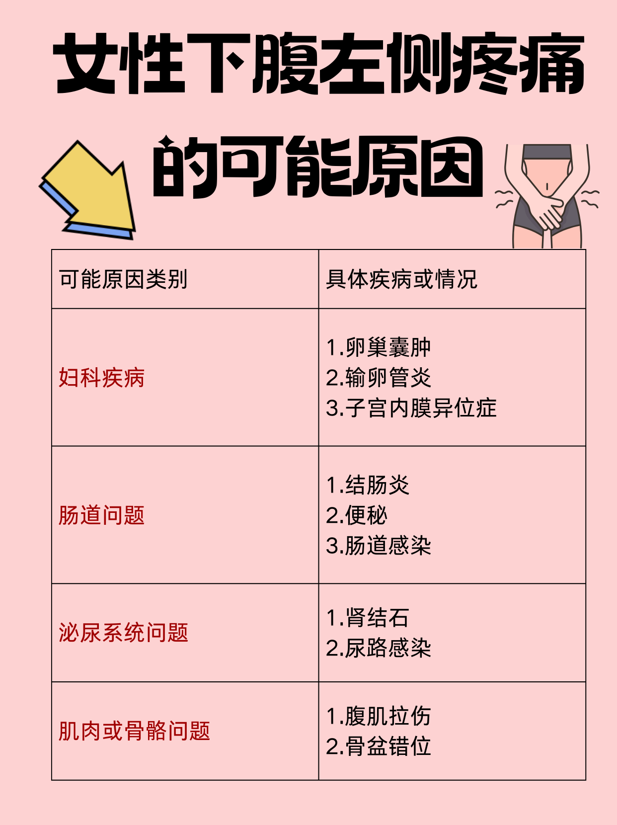 在女性的日常生活中,下腹部的疼痛有时是难以避免的健康小插曲。特别是当疼痛出现在左侧下腹部时,可能让人倍感困惑和不安。今天,我们就来聊聊女性下腹左侧疼痛的可能原因,以及在哪些情况下需要紧急就医,并提供一些缓解下腹左侧疼痛症状的实用方法。