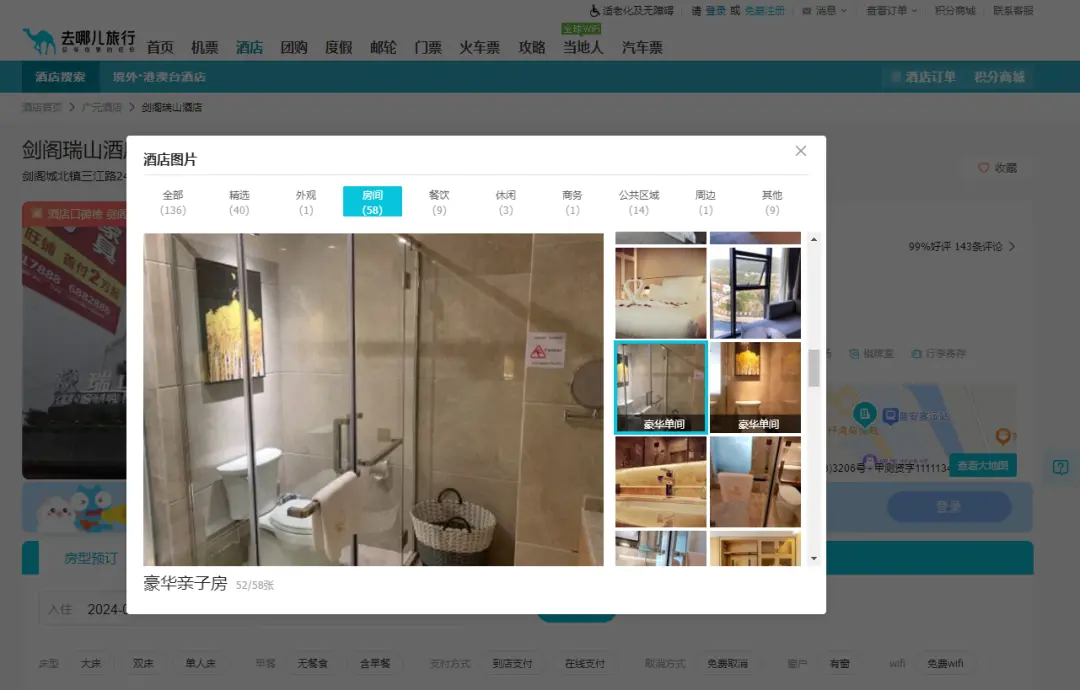 冉先生女儿向记者展示了酒店洗手间相关视频,地面上未有相关防滑地垫,但浴室内部有卷起来的防滑地垫,且浴室门把手上有防滑地巾。记者从去哪儿旅游平台搜索剑阁瑞山酒店发现,酒店对外展示洗手间图片中,浴室门把手上有防滑地巾,且洗手台旁有防滑标语。