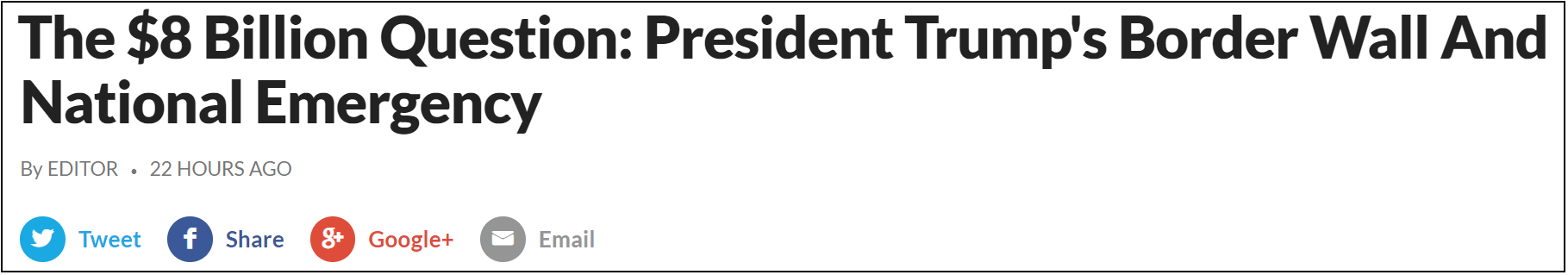 可是,就在2月15日,特朗普总统宣布全国紧急状态的时候,居然宣布将动员80亿美元用于修建超过250英里的隔离墙。民主党人却对此毫无办法。