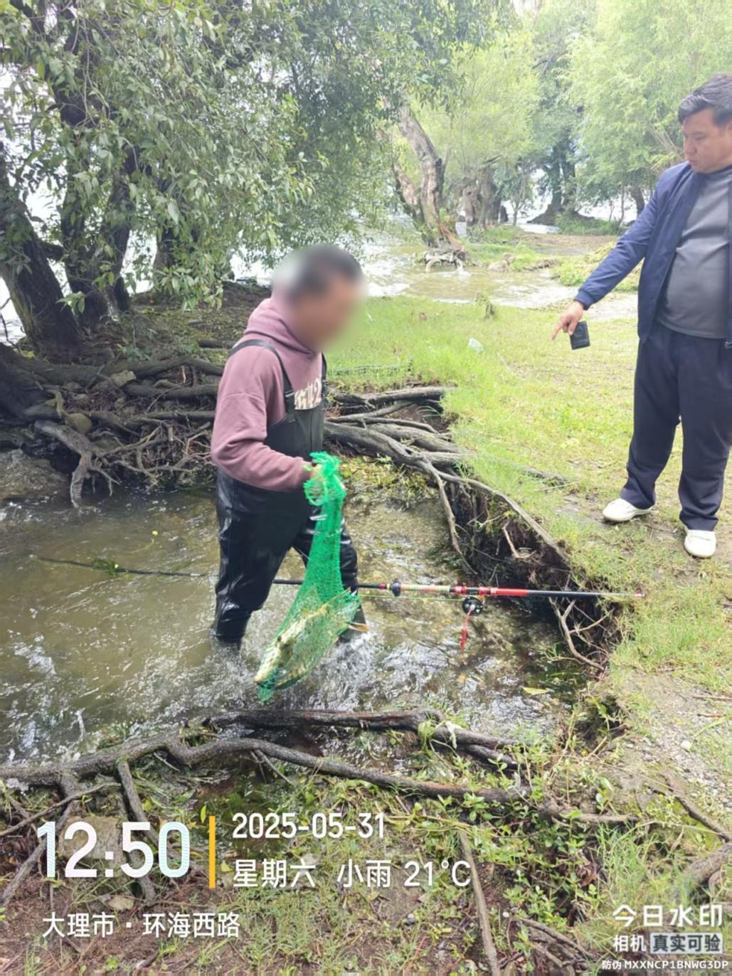 2025年5月31日12时40分,大理市洱海流域管护中心执法人员在巡查过程中,现场查获当事人张某福在太和街道下末村洱海水域范围内使用可视锚鱼竿非法锚鱼。执法人员依据《云南省大理白族自治州洱海保护管理条例》相关规定,对张某福依法处以罚款的行政处罚。