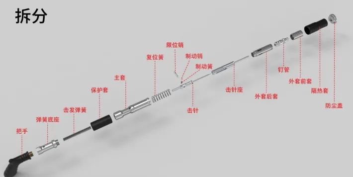 (案涉射钉枪3D实物证据模型的动态拆解过程)