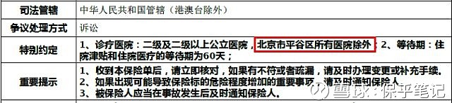 当然,做到哪种程度可以被认为是“清晰告知、明确提示”,精算君认为就有非常多的争议空间了,比方说仅在“投保须知”里面提及,合同并未列明。还有百年的电子合同里也并未明确列示定点医院的清单,这个是否也可以认为不生效?(据客服告知,纸质合同是有投保地的定点医院清单)
