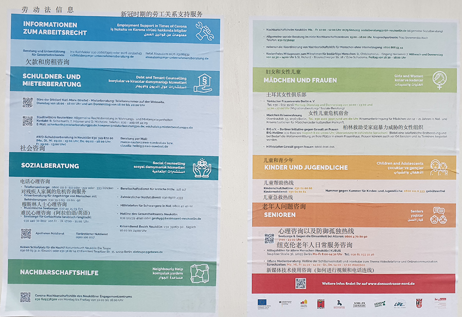 柏林纽克伦区随处可见的社区新冠帮扶指南。