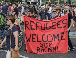 同一项调查显示,38%的德国人(在前东德人中的比例更高)担心,还会有更多的难民涌入。然而,这并不意味着其中的一些人对此不抱有同情之心,或是不打算帮忙。极右翼分子焚烧难民收容点的事件屡有发生,深色皮肤的人走在街上有时也会遭到袭击,但任何公开鼓动反对难民的尝试都会遭到抵制。