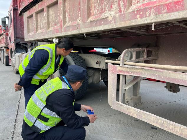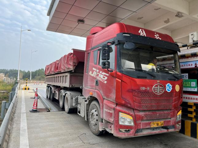 3月13日16时,两辆六轴货车驶出揭博高速紫金西站ETC车道时,收费站警报器响起,正在值勤的工作人员发现异常后,立即上前查看。原来该车辆粤通卡缺少入口信息,导致未能成功扣款。工作人员在处理过程中,发现两辆货车为运输砂石车辆,均存在超载的嫌疑,随即将车辆引导至人工车道。经检测,一辆总重为60.70吨,超限23.88%;另一辆总重为64.68吨,超限32%。工作人员见状,立即将情况上报监控中心,通知路政、高速交警到场处理。