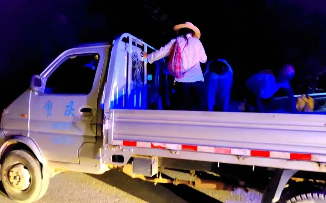 近日,万州区公安局交巡警支队天城公巡大队执勤民警在辖区G348国道沿途进行夜间巡逻。20时30分许,当民警巡逻至G348国道959公里一便道口时,发现一辆在道路上行驶的轻型栏板货车车厢里人头攒动。