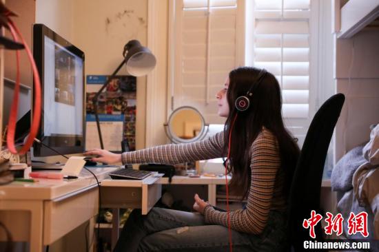 当地时间3月23日,美国纽约州的学生开始在家中进行线上学习的第一天。