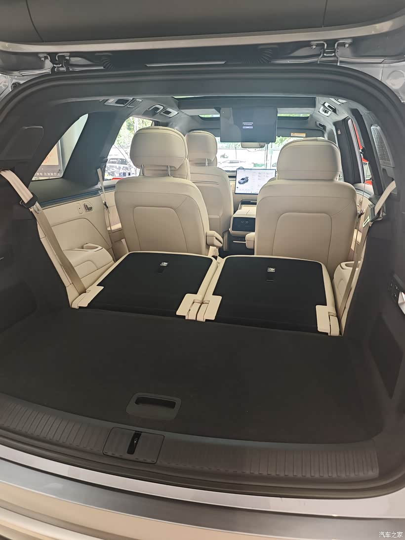 三排座椅放倒是纯平的。另外后备箱带高度记忆,可以物理按键长按,也可以车机屏幕控制。