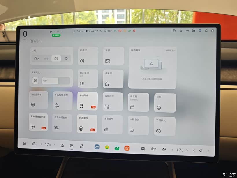 2、功能设施都集成在大屏幕了,有吸顶屏幕,标配就好了。