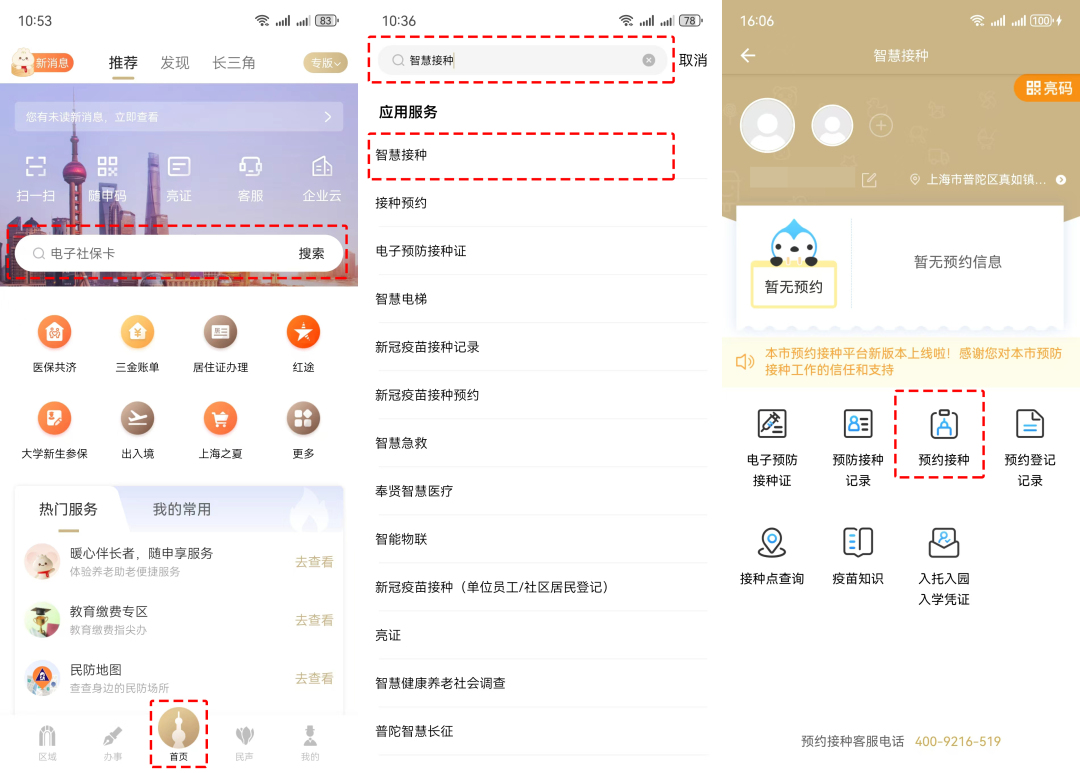 市民朋友可以通过“随申办市民云”APP查询接种门诊信息或预约接种。操作步骤如下↓