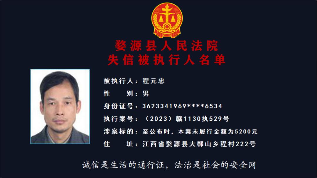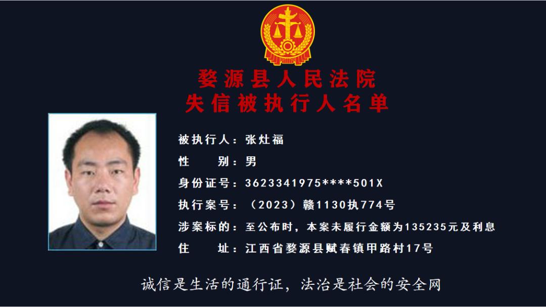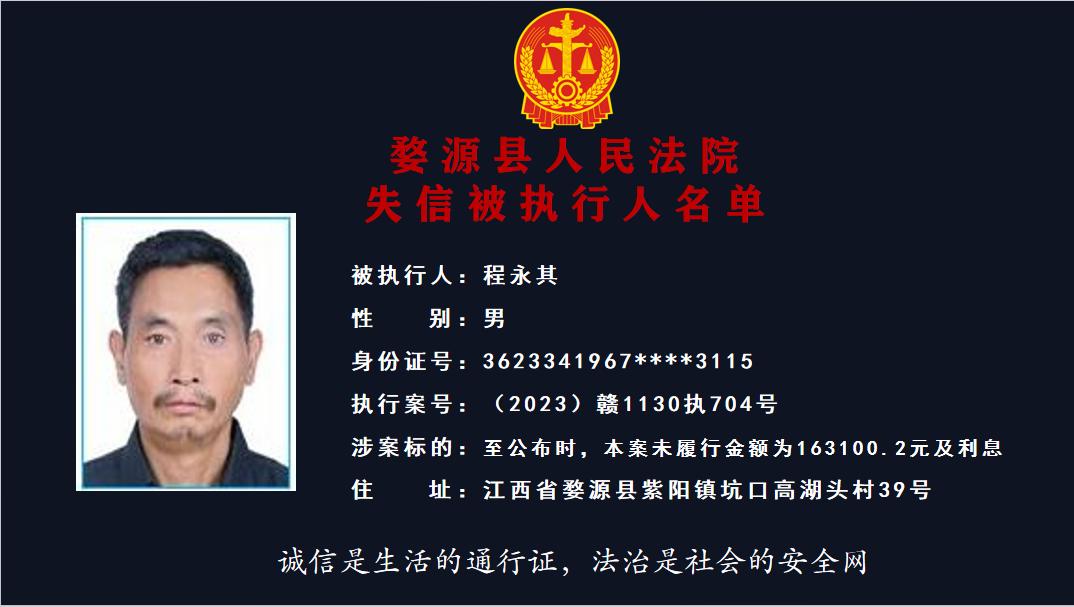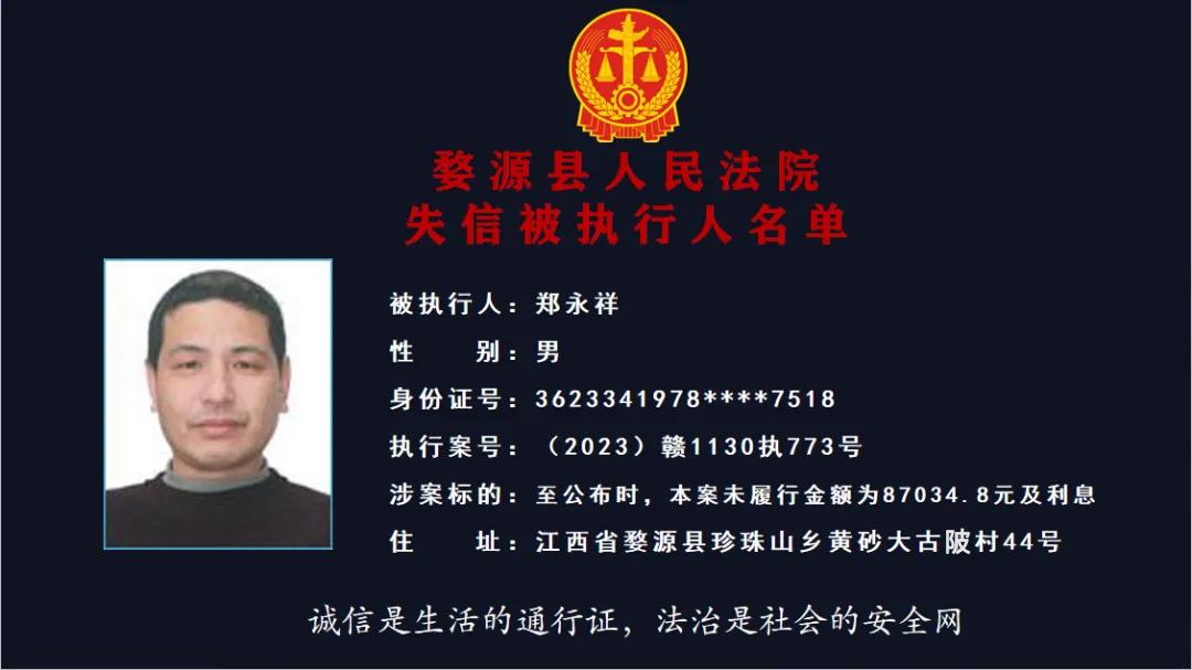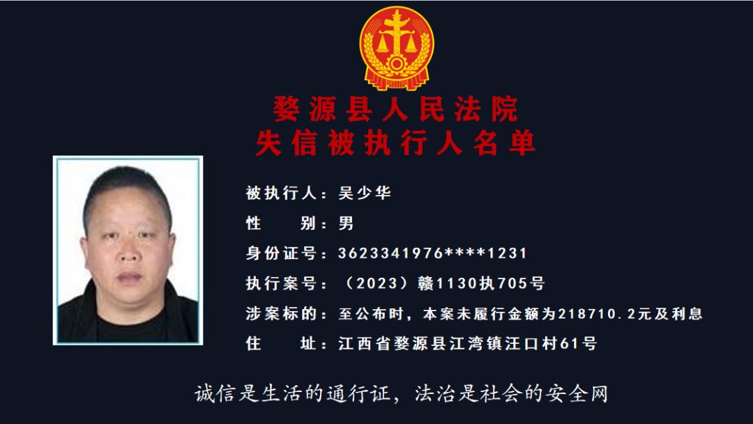 以下名单信息截止日期为2024年3月21日,根据案件结案情况及时更新,相关信息核实请联系婺源县人民法院执行局,欢迎广大人民群众在我院微信公众号留言举报被执行人的财产线索和下落,监督限制被执行人的高消费行为。
