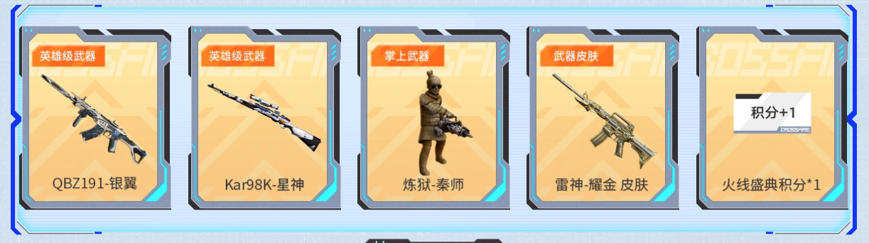 2025火线盛典主题活动期间,还有超强自选奖池限时开放不容错过!CFer每日登录游戏即可领取1积分,在指定加码日期登录还能领取双倍积分,登录掌火APP还有加码积分相赠。成功获得积分后,CFer即可消耗积分用于抽奖,包括QBZ191-银翼、98K-星神、炼狱-秦师与雷神-耀金皮肤均有机会免费获取,未能成功抽取到以上道具也将获得积分返还福利。