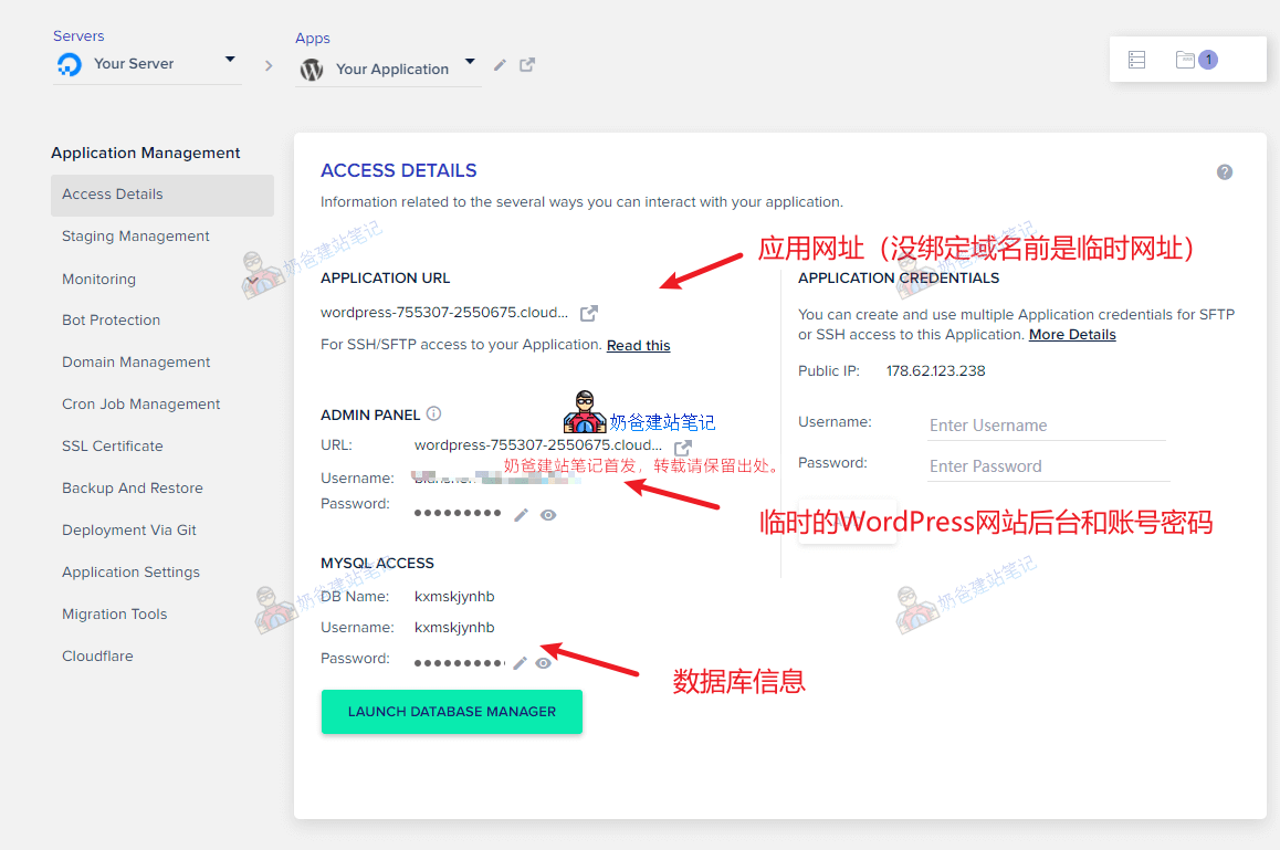 管理WordPress介绍完了服务器,接着我们来说WordPress,安装好服务器之后,Cloudways默认已经给你安装好了WordPress。