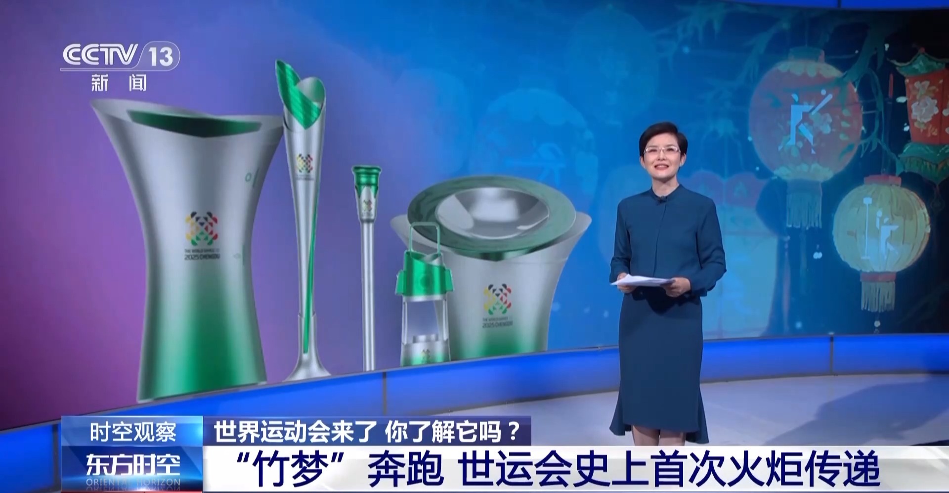 成都世运会火炬取名“竹梦”,造型提取三星堆出土的青铜大立人像身形,又似一株傲然挺立的“竹子”,喻示世运健儿势如破竹。
