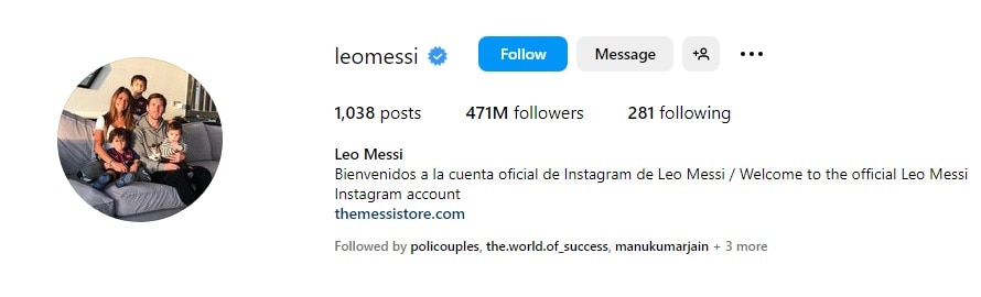Lionel Messi has amassed a sizeable following of 469 million Instagram users. On his Instagram profile, you find snapshots of his career as a revered sportsman, his moments with family, and insights into various events he attends.