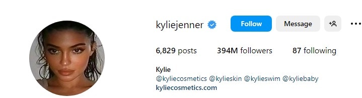 Ranking as the fourth most followed person on Instagram, we find the fashion influencer and celebrated celebrity Kylie Jenner; her account commands an extraordinary following of 388 million. Her profile serves as a platform where she showcases her renowned ventures, including the highly lucrative Kylie Cosmetics brand, as well as other notable ventures like Kylie Skin, Kylie Swim, and Kylie Baby.