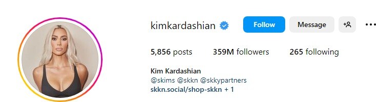 Kim Kardashian is next on our list of the most followed Instagram accounts. As a prominent media personality and astute businesswoman, Kimberly Noel Kardashian maintains an impressive count of 359 million Instagram followers.