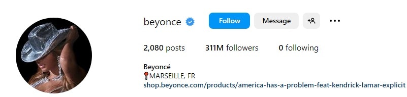 Beyoncé's Instagram account garners an impressive following of 311 million and features a vast collection of over 2,060 thoughtfully curated posts. Beyoncé's account exemplifies the same unwavering commitment to excellence that she embodies in her mesmerising performances.