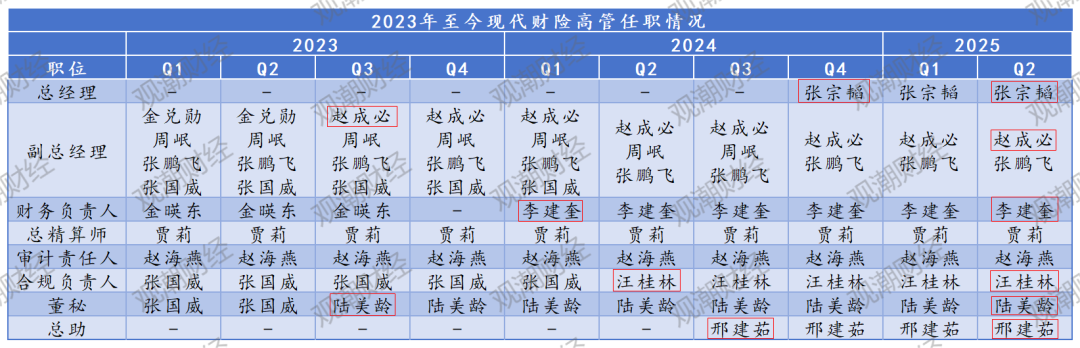 2024年5月,张国威辞去现代财险副总经理、合规负责人职务,该公司副总经理人数4位变3位。同年6月,来自华农财险的汪桂林获批担任该公司合规负责人。