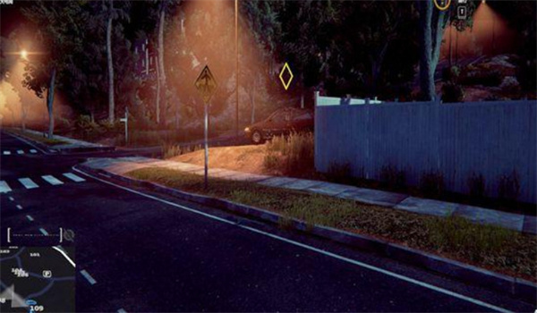 7、按提示我们回到了正马路上, 这里也需要按提示找到我们的车离开,需要收起撬棍,不然会报警。汽车就在被盗那户的围栏外侧。