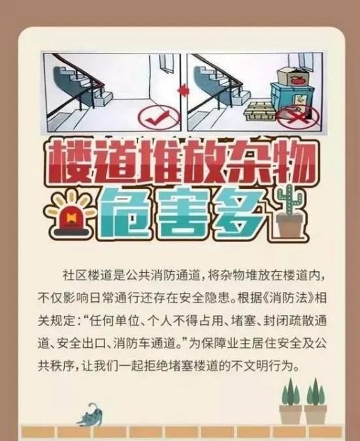 其实不然。社区楼道是公共消防通道,当发生地震、火灾等灾害时,楼道堵塞严重影响他人逃生,且废弃杂物存放时间久后,稍遇明火极易引起火灾。因此,在社区公共区域堆放杂物,不仅侵害业主共有权益,也可能违反消防法律法规,造成消防隐患!