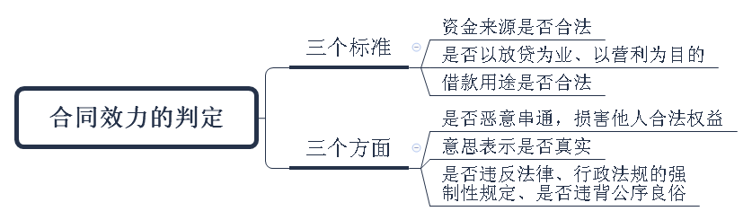 二十世纪九十年代,相关法规和政策通过对非法金融活动的取缔,间接认定企业借贷无效。随着司法理念的转变和一系列法律法规的颁布实施,法院对企业借贷的效力认定转变为原则上有效、特殊情形无效。实践中,法官需深入理解相关法律法规,准确适用合同无效的相关条款,审慎判断合同效力,重点把握三个标准并审查三个方面: