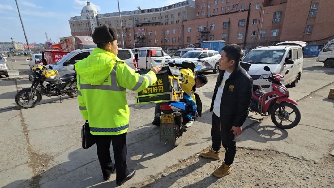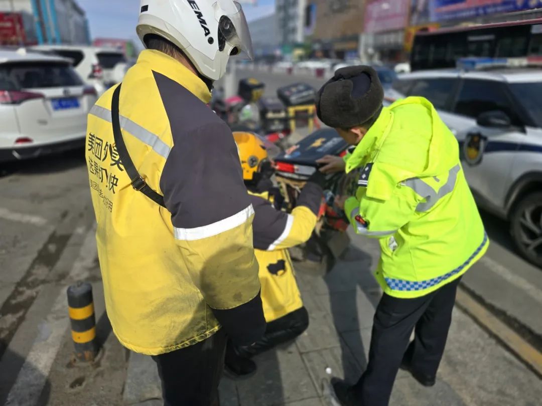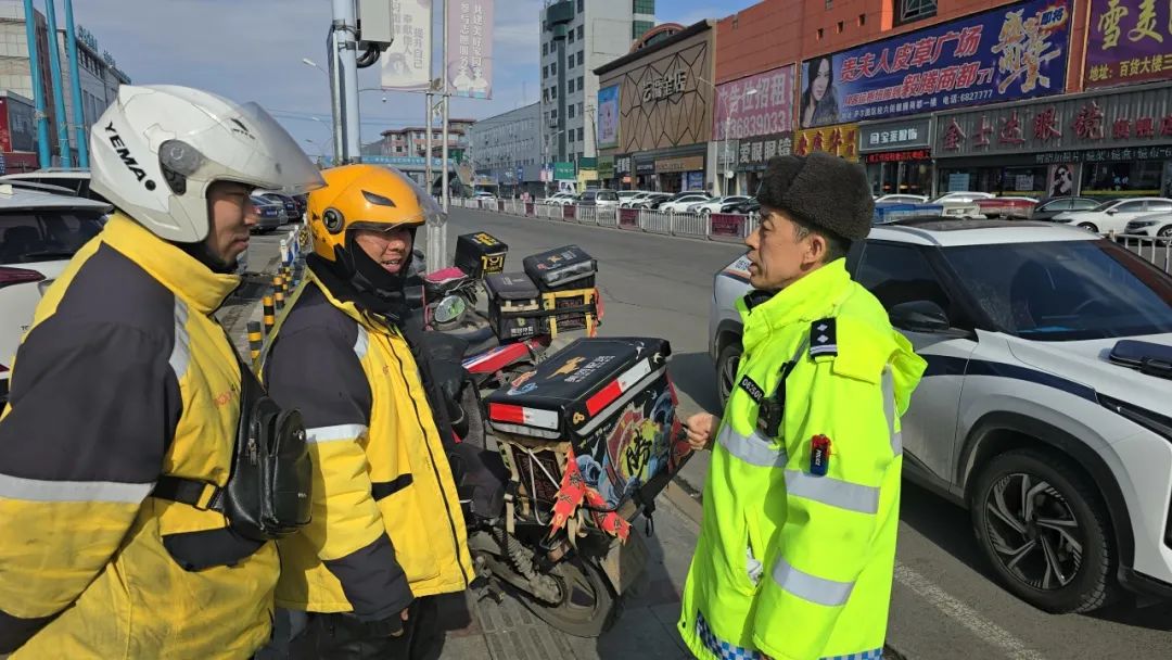 最后,大庆交警提醒广大外卖骑手们出行前要对车辆安全性能进行检查,保证车况安全良好。春季易发生降雨、反潮等现象,易导致路面湿滑,驾驶过程中应防止麻痹大意,控制好行驶车速,不能盲目求“快”,将“安全”抛之脑后,要树立文明骑行理念,自觉遵守交通法规,摒弃交通陋习,做好安全防护,争做文明交通参与者、平安交通守护者。