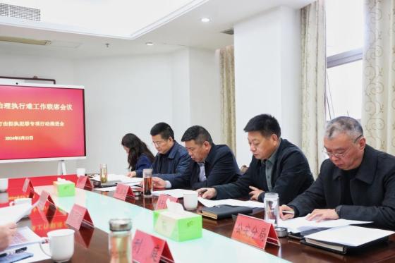 此次会议主要商讨如何破解专项行动中,长期困扰执行工作的难题。会议强调,一是政治站位要再提高,要扎实开展集中打击拒执犯罪专项行动,不断增强群众获得感、幸福感、安全感。二是关键举措要再抓实,要加大打击力度,强化综合施策,健全落实相关协调机制,不断提升打击拒执犯罪科学化、规范化、高效化水平。三是组织领导要再加强,要强化协同联动,开展广泛深入的宣传,营造严厉惩治拒执犯罪行为的强大舆论氛围,凝聚全社会理解执行、尊重执行、协助执行的广泛共识。