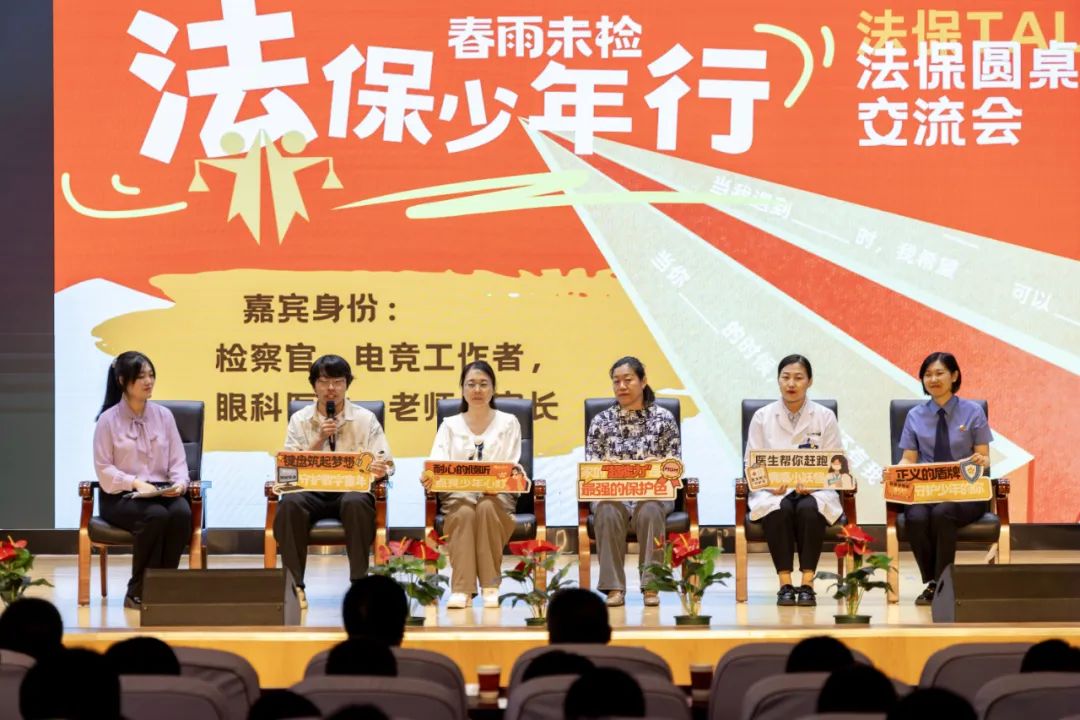 2025年5月27日,山东省东营市东营区检察院检察官、电竞选手、眼科医生、心理老师、司法社工组成“跨界守护团”,与中学生探讨未成年人网络保护。