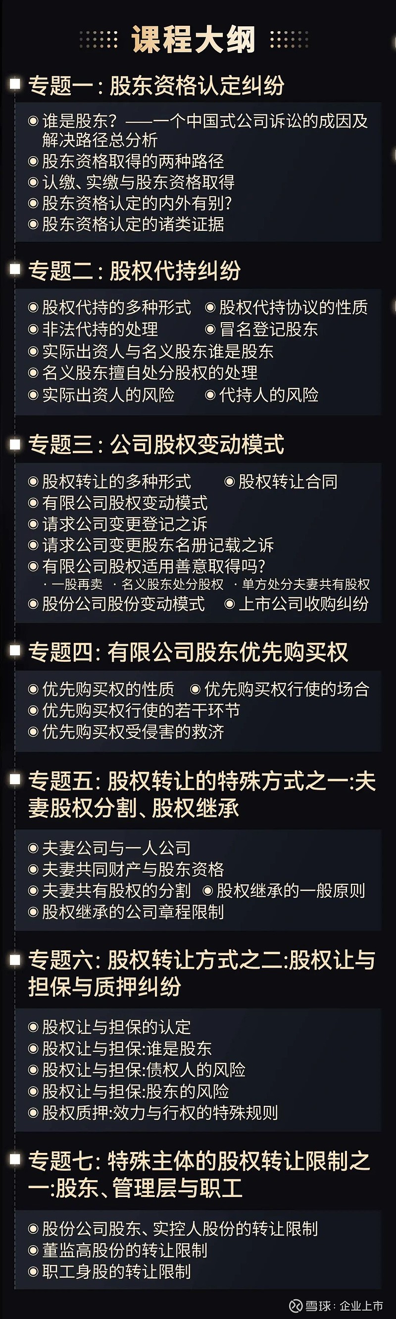 他将在两天、14个小时的时间里,以公司组织法与合同交易法的交叉适用为核心脉络,将十大专题系统整合为股东资格认定纠纷、股权持有典型问题、股权转让阶段问题这三大模块,深度解析新法下股权转让纠纷的痛点与对策,通过大量真实案例,将抽象规则转化为可落地的操作指引,呈现股权转让全流程的法律适用逻辑。